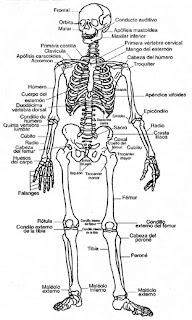 El esqueleto esta formado por huesos. Los huesos son las estructuras mas duras de nuestro cuerpo. Su dureza permite que el esqueleto sea una estructura que da soporte al cuerpo, ademas de brindar proteccion a organos como el cerebro. Muchos de los movimientos que realizamos, como correr, caminar, saltar o agacharnos, son posibles gracias al soporte que nos dan los huesos.